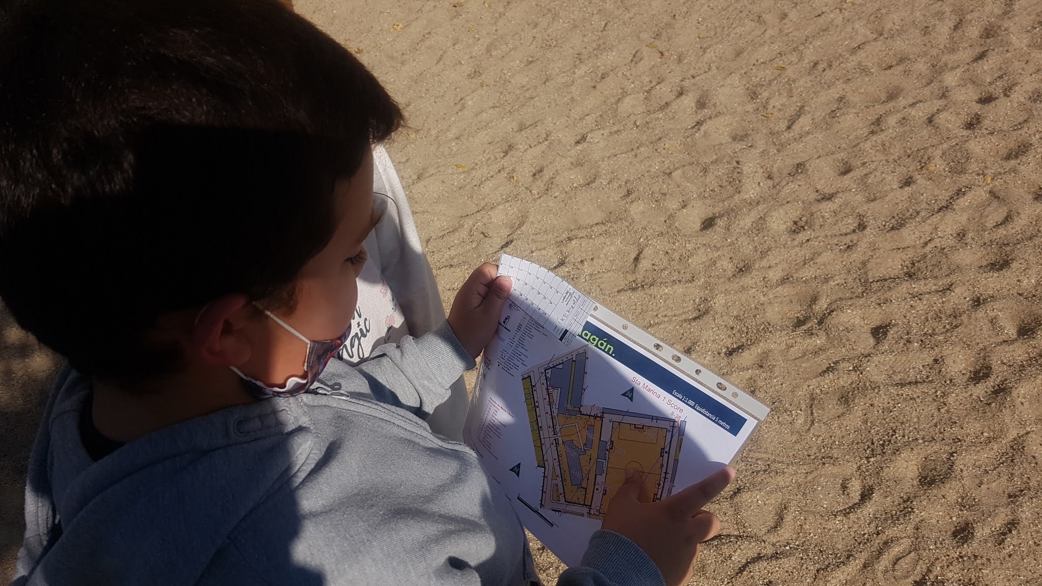 Para después del recreo, estaba destinada la ansiada y esperada práctica en la que los alumnos/as de 3º y 4º de Primaria, distribuidos por parejas, demostraron todas sus habilidades en la modalidad "score", en la que la salida es masiva y el objetivo de cada orientador era encontrar las doce balizas señalizadas sin necesidad de seguir un orden establecido.